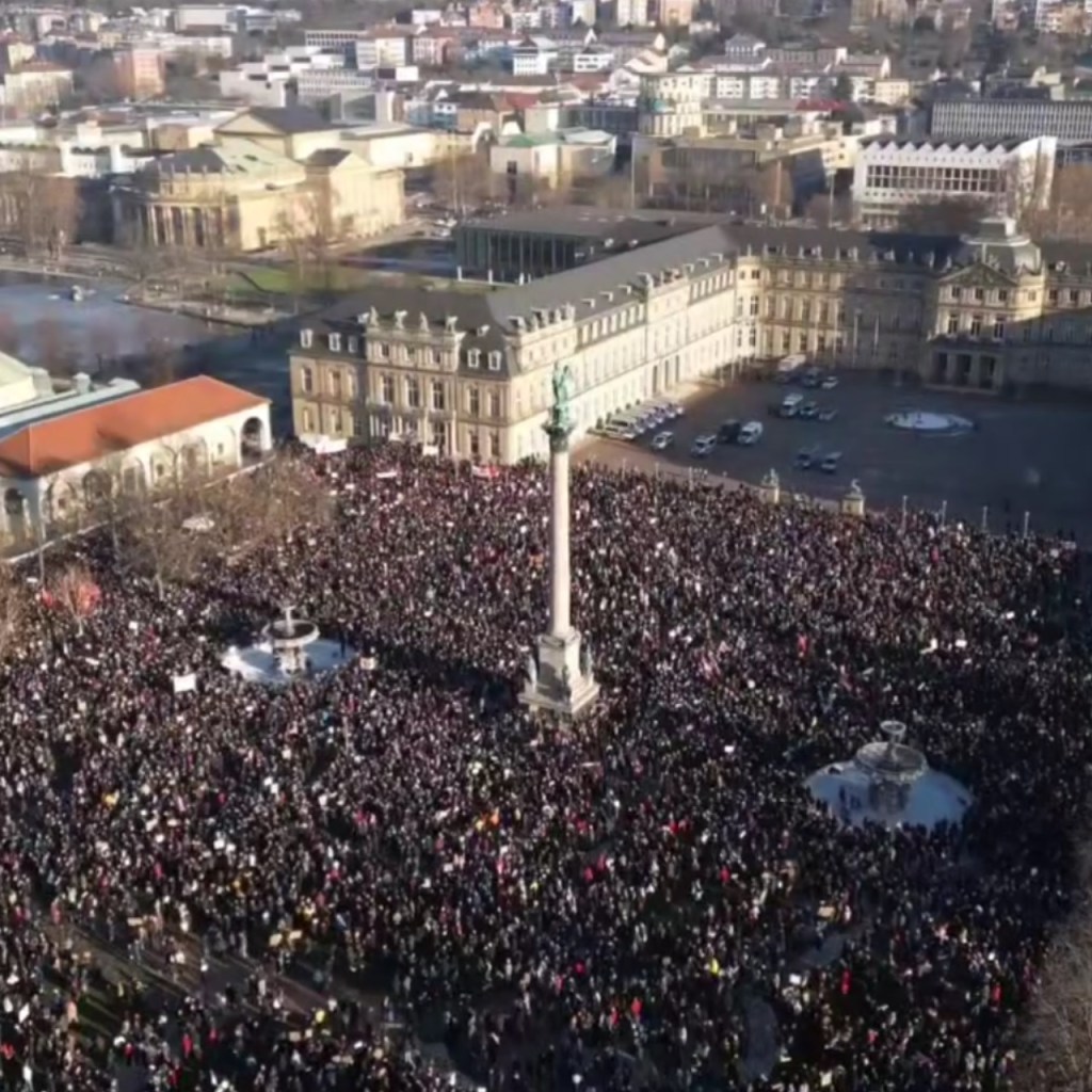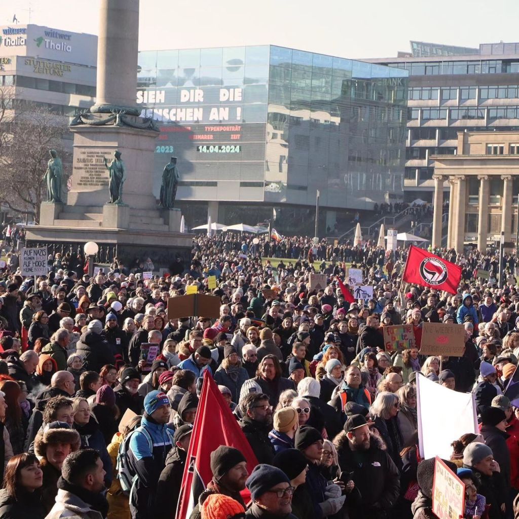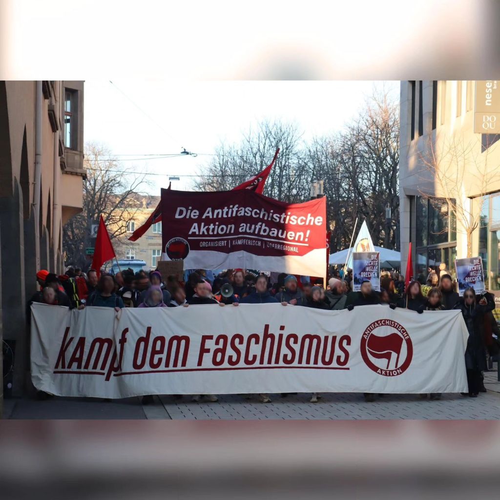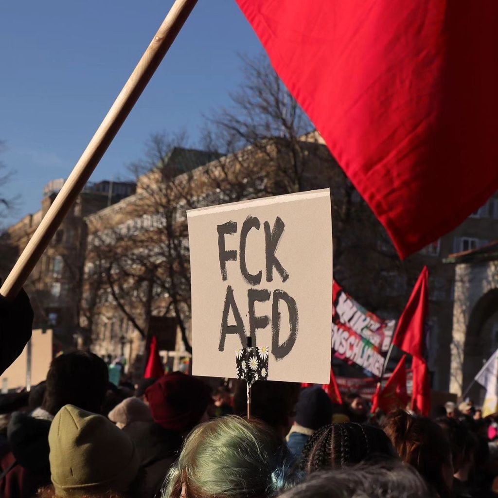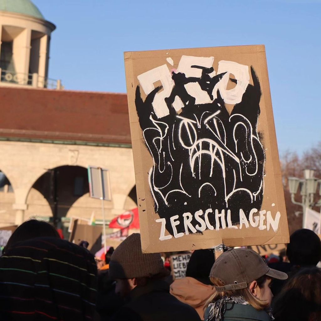 Heute haben wir mit zehntausenden Menschen auf dem Schlossplatz gegen die AfD und andere Aspekte der aktuellen rechten Welle demonstriert. Hintergrund war die kürzlich bekannt gewordene Recherche von correctiv.org, die belegte, dass Funktionär:innen der AfD auf einem Geheimtreffen mit anderen Faschist:innen sehr konkret über die Massendeportation von Migrant:innen aus Deutschland sprachen.