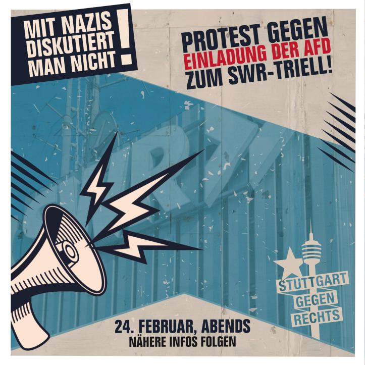 Am 24. Februar veranstaltet der SWR das Triell zur Landtagswahl – eine Diskussionsrunde mit den Spitzenkandidaten der nach aktuellem Stand aussichtsreichsten Parteien zur Prime Time um 20.15 Uhr. Beste Sendezeit für Manuel Hagel (CDU), Cem Özdemir (Grüne) und auch Markus Frohnmeier von der AfD. Dass in solchen Formaten die hetzerischen Positionen der Partei nicht inhaltlich gestellt werden können, wurde in der Vergangenheit häufig bewiesen.