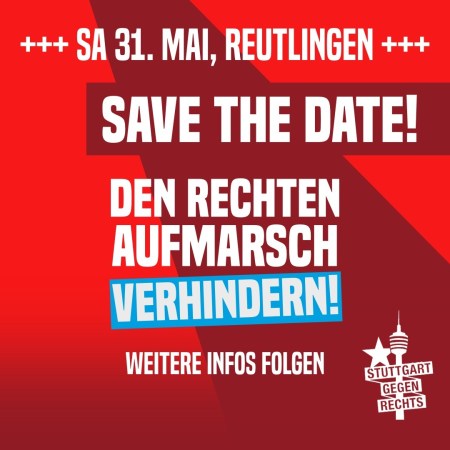 Save the Date! Reutlingen: am 31.5.25 den Rechten Aufmarsch verhindern!